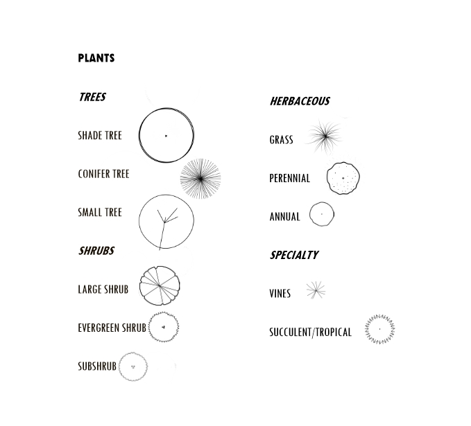 Each plant type can be displayed with a specific plant symbol. Here are some suggested symbols: