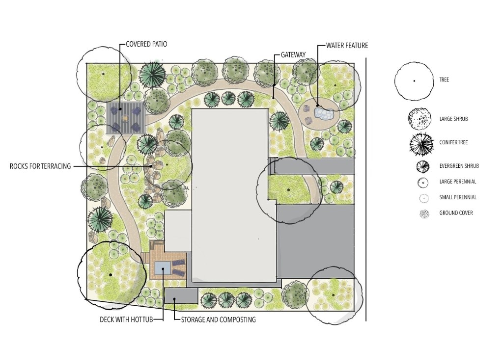 Planting design is a challenging and fun part of garden design. There are many different approaches to planting design, and there is no right or wrong way to do it. A simple approach includes buying plants that you like and installing them where they fit. There is nothing wrong with methods like this, but this approach here is more systematic. First, clarify the purpose of the plants you are trying to use, and then create a planting plan of plant types, starting with large structural plants and working down to smaller ones. The final step is to select specific plants for the design.
